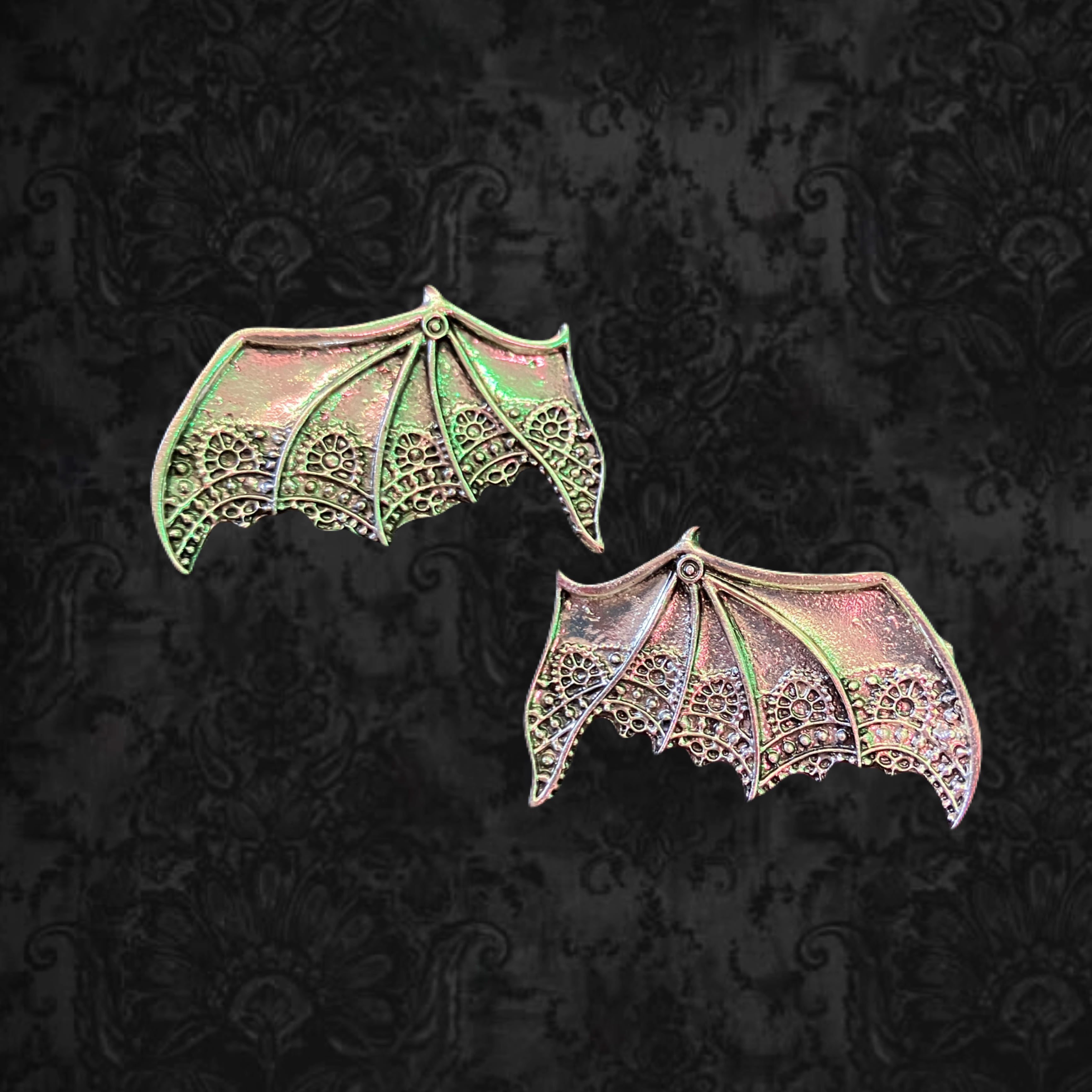 コウモリの羽モチーフのゴシックなヘアクリップ。大きすぎず小さすぎないサイズ感で使いやすい!
