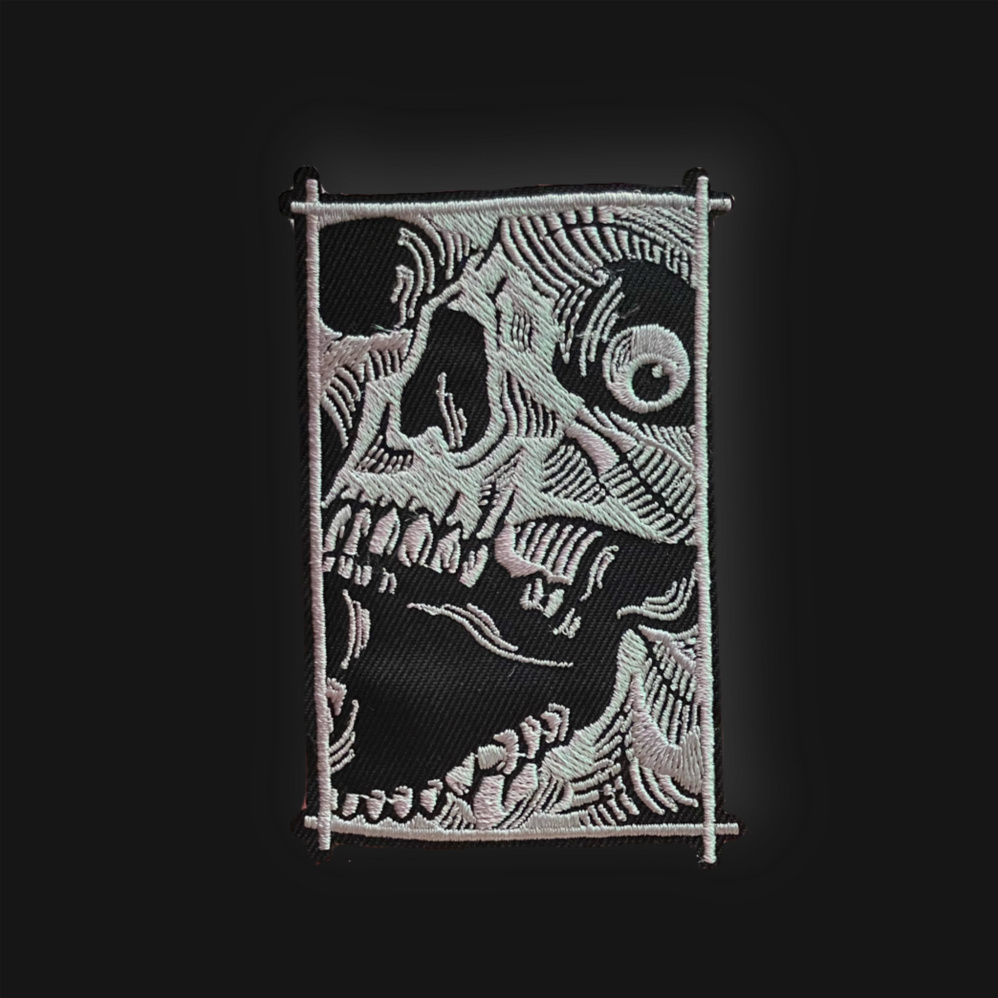 単眼の骸骨をモチーフにした、個性的な刺繍ワッペン。ダークでフリークな雰囲気が好きな方におすすめです。