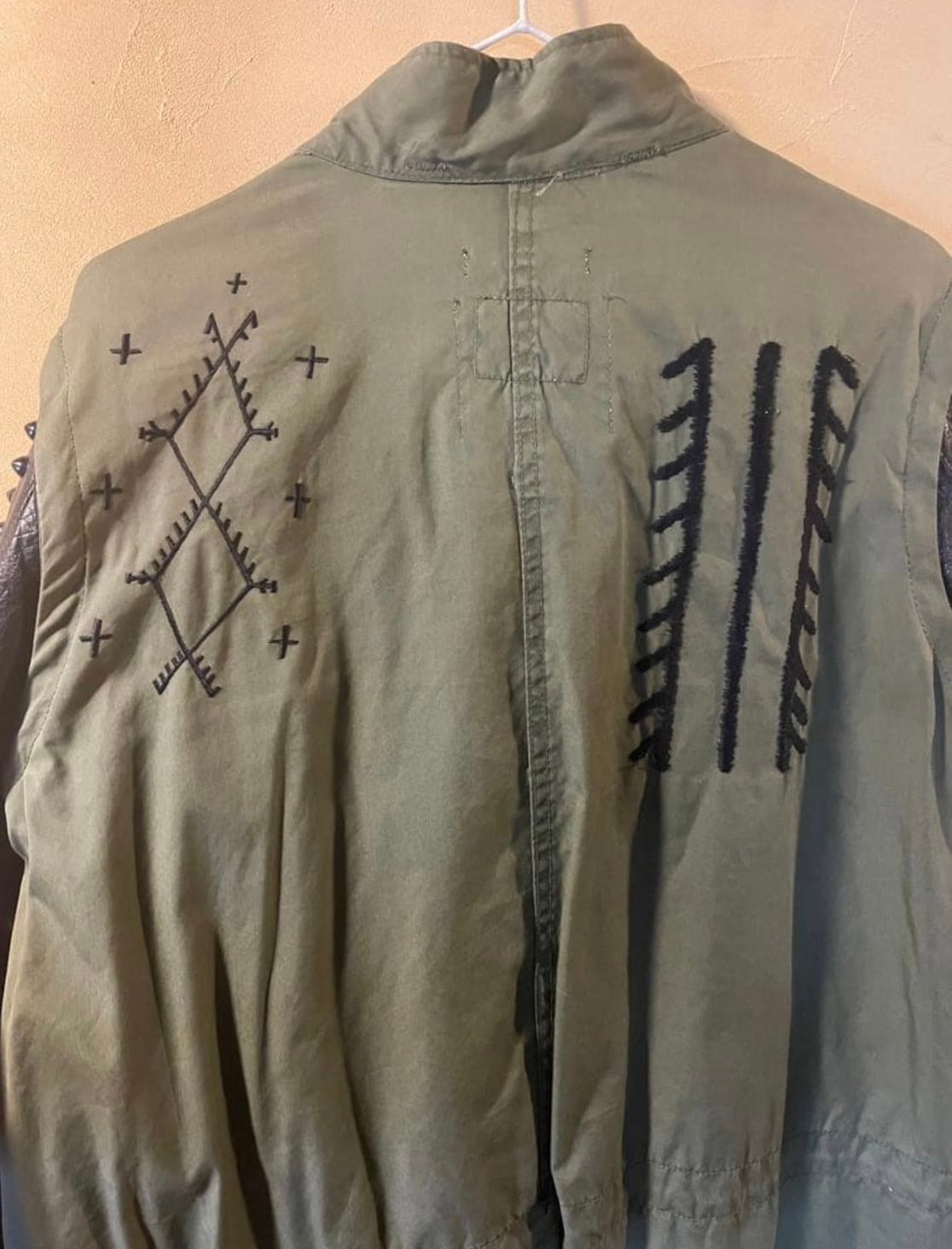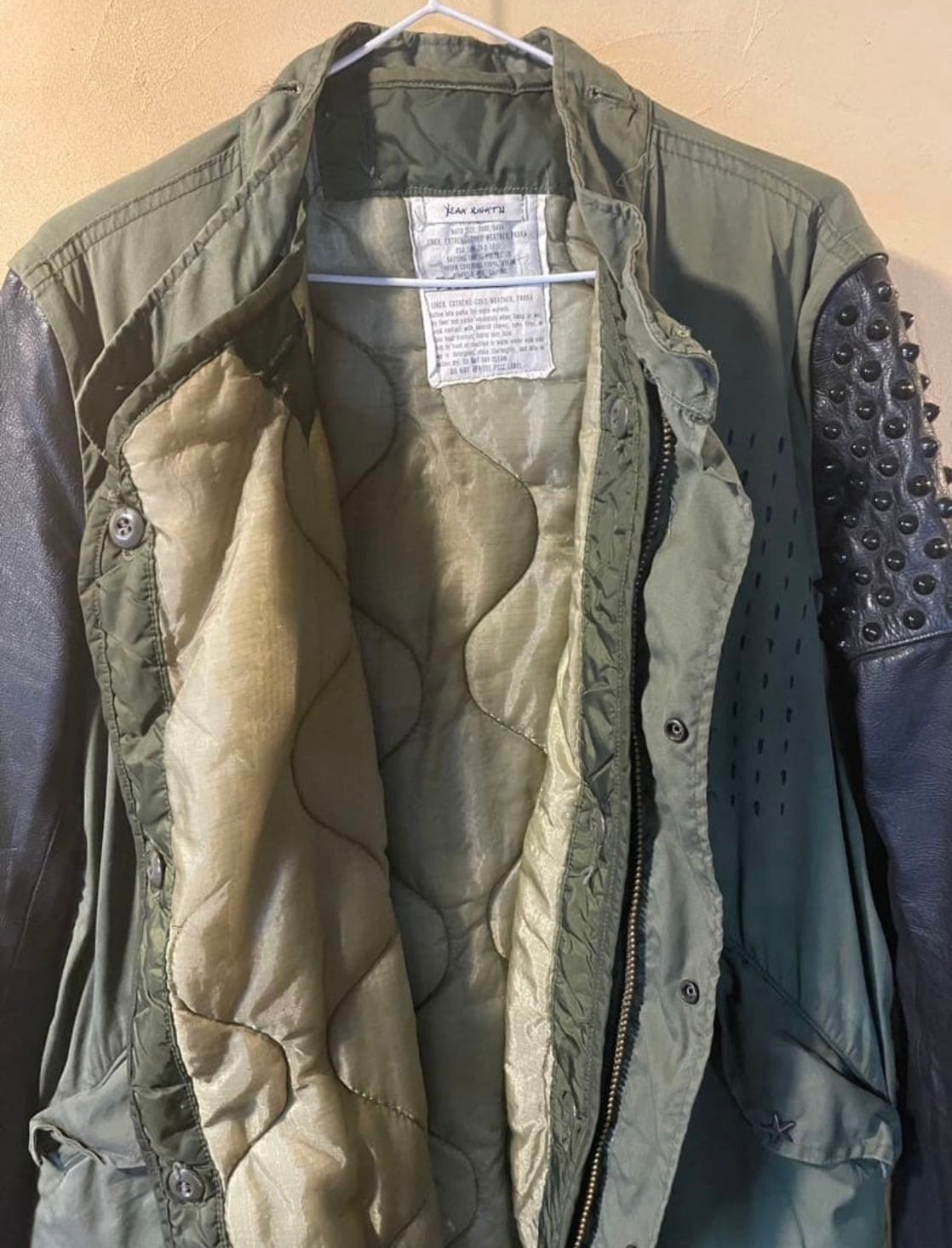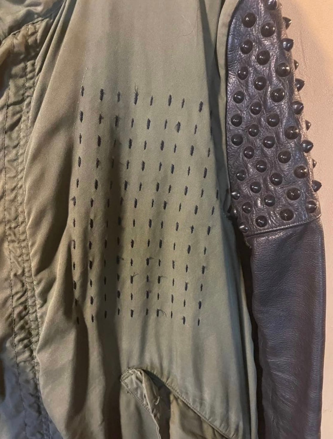 両袖はレザー、ファスナーで取り外し出来ます。